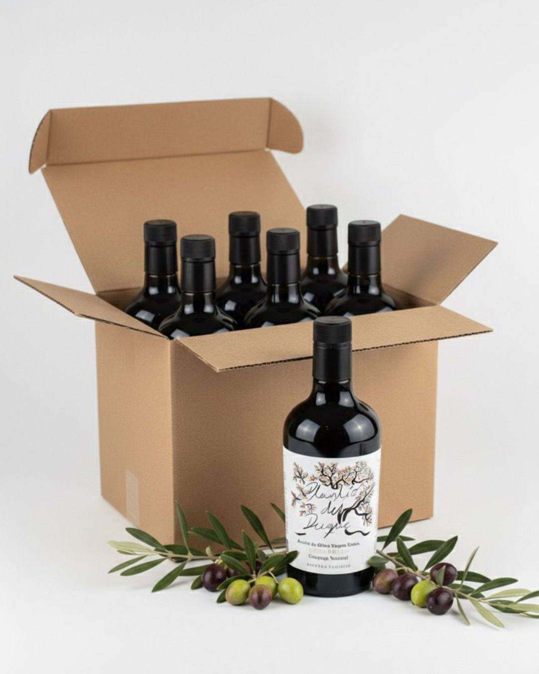Caja 8 botellas – Aceite de Oliva Virgen Extra Ecológico · Coupage (Reserva Familiar)